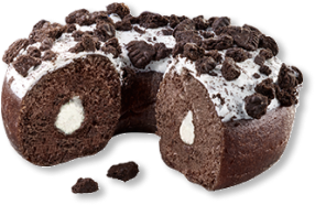 Un délicieux donut à la pâte cacaotée, au fourrage généreux goût vanille et décoré de morceaux de biscuits OREO.